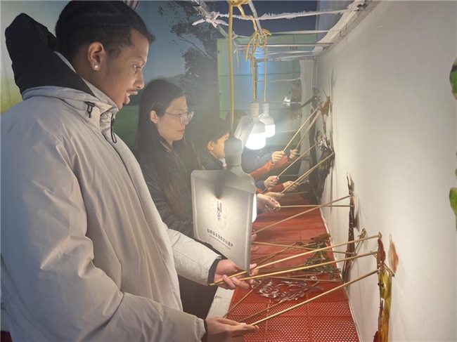 На мероприятии также были организованы разнообразные мероприятия, позволяющие познакомиться с традициями Нового года в рамках нематериального культурного наследия. Перед стендами по вырезанию из бумаги, написанию весенних новогодних надписей, тушению, сахарной живописи, изготовлению шторок в стиле Да-Вэнькоу и просмотру тайшаньской киногулии собрались многочисленные иностранные посетители. Каждого иностранных студентов сопровождал «маленький гид», и благодаря их живому описанию и помощи дети могли глубоко погрузиться в искусство нематериального наследия. У стенда тайшаньской киногулии ученик третьего класса Лян Сюаньхэ рассказывал иностранным друзьям о классическом спектакле «Сунь Укун трёх раз бьёт Белую костную демону»: «Смотрите, как гибко двигается Сунь Укун!» Глава труппы тайшаньской киногулии Янь Дунмэй отметила, что как объект нематериального культурного наследия мирового значения, тайшаньская киногулия уже добралась до более чем 20 стран мира и благодаря выступлениям в школах, прямым трансляциям и коротким видео продолжает оживать и обновляться.